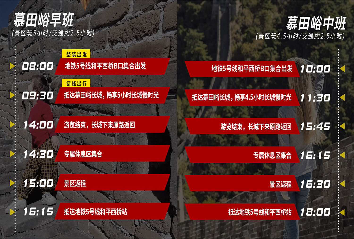 慕田峪长城景区专线集合时间:双班次任选,早班8:00 &中班10:00